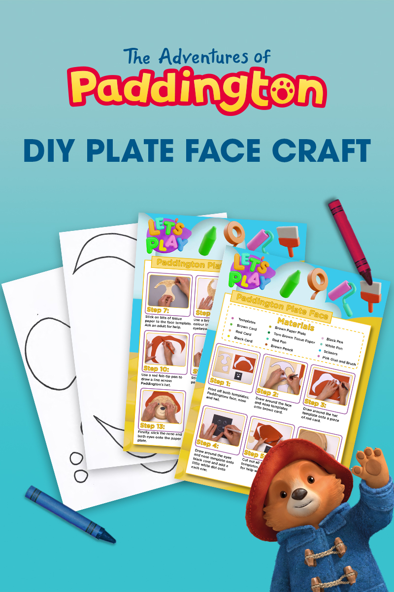 Gather a few simple items from around the house to make this craft. The printable template includes a list of materials (paper plate, construction or tissue paper, scissors, glue, marker) to make Paddington’s adorable face and signature red hat.