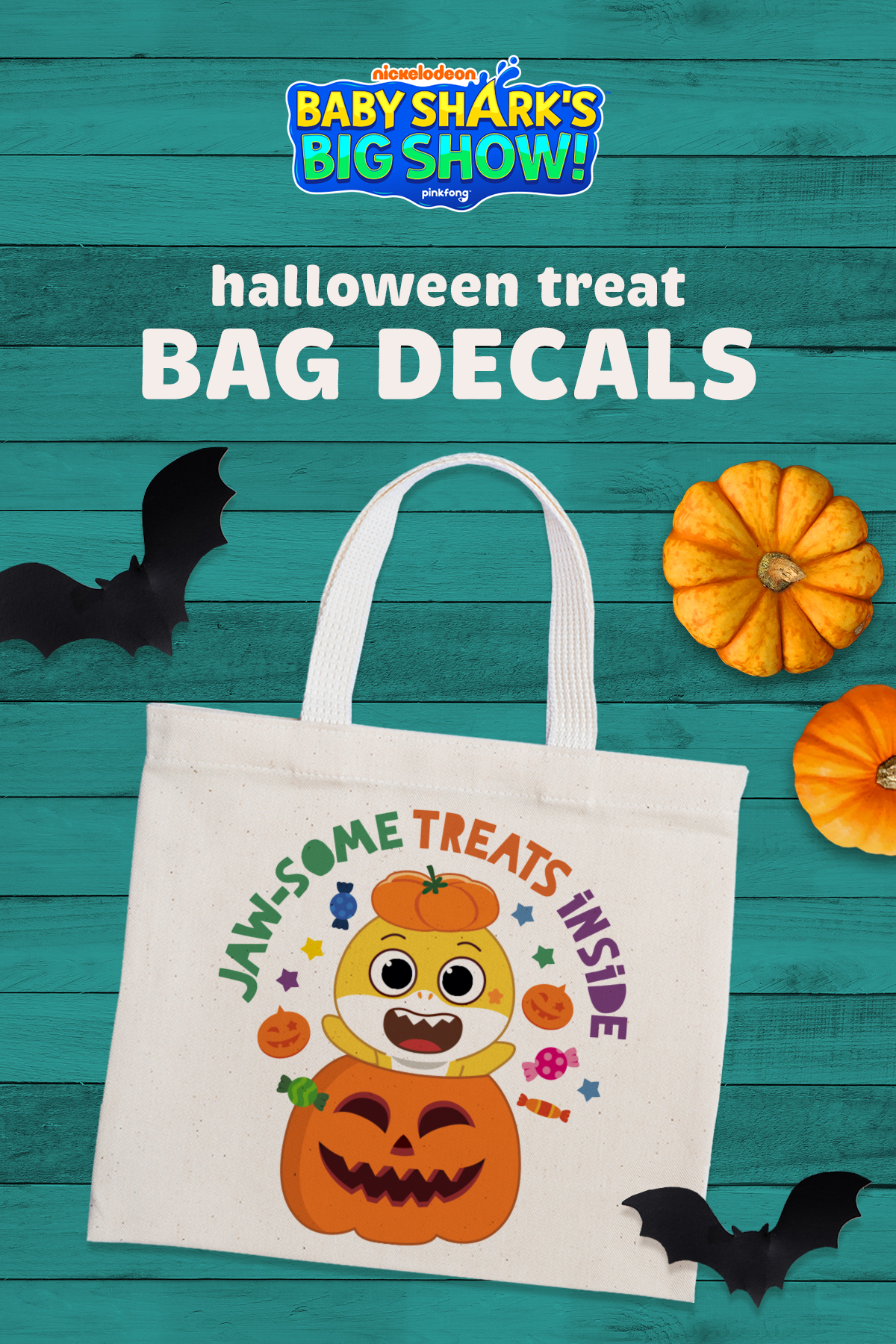 Before trick-or-treating, dress up your little guppy’s loot bag with Baby Shark’s Big Show jaw-some printable decals.