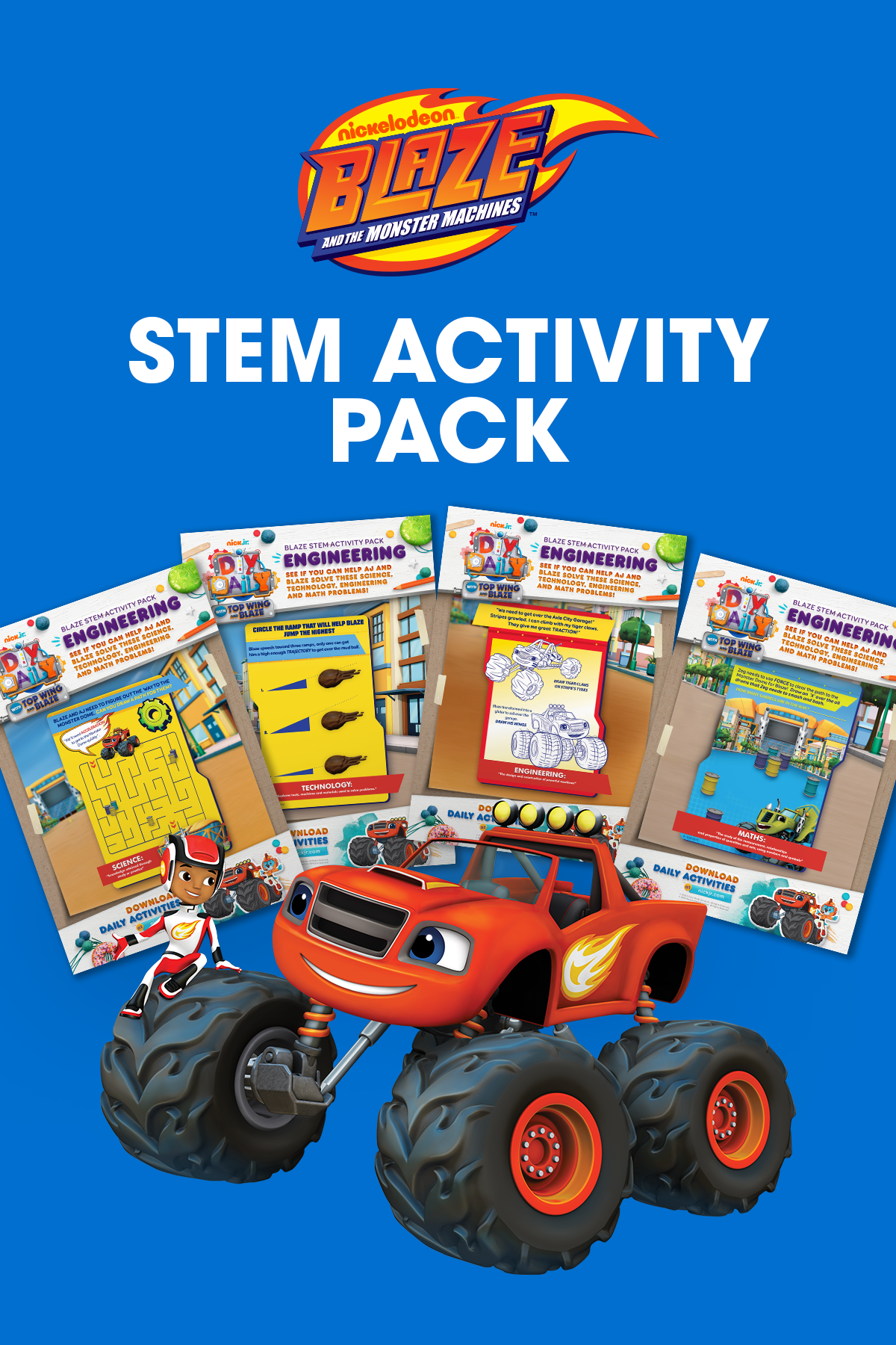 AJ and Blaze need some help problem-solving their way through tricky mazes, mud ball jumps, and smashed oil barrels. Planning, calculating, and counting are needed in a big way! This printable packet will get those little gears going.