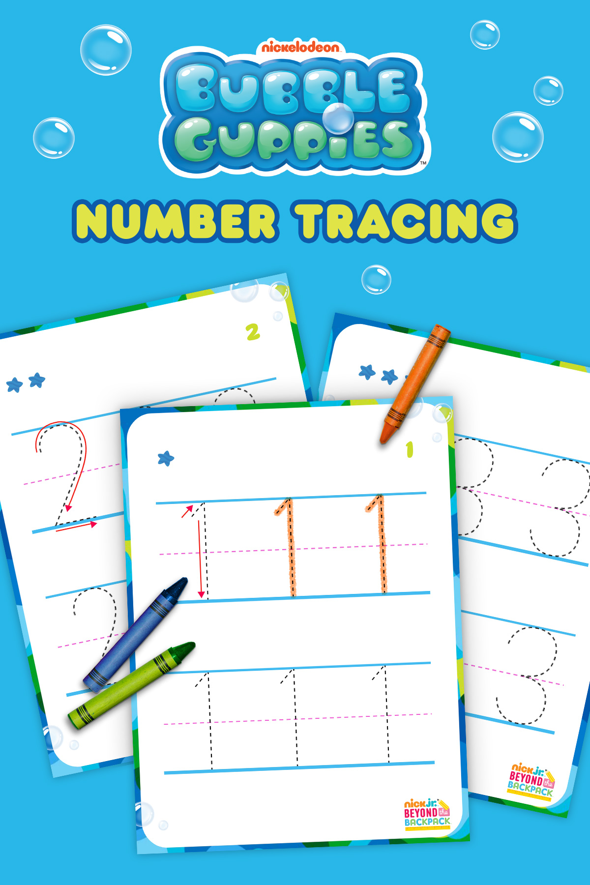 Count on the Bubble Guppies to help your little ones practice their numbers. Grab a pencil and help your child follow the instructional arrows to help them trace each number. Can your child count to 10? 20? Higher?