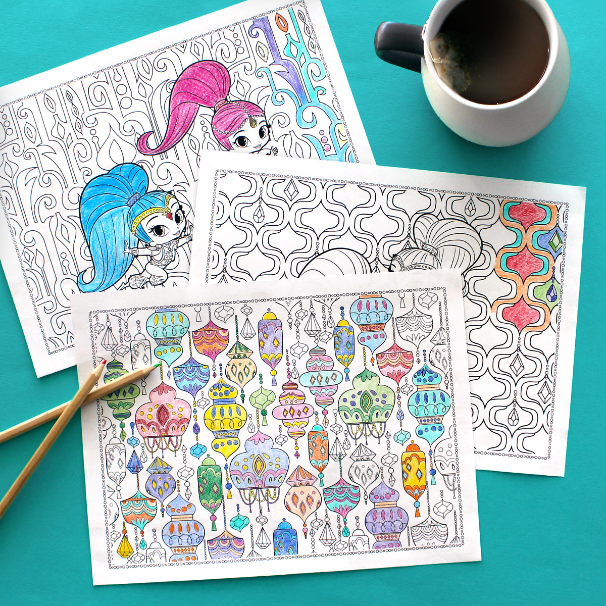 Your creativity can benefit both you and your kids! Shimmer and Shine use their creativity to take risks and solve problems. You can model this creative behavior for your kids by bringing a black and white page alive with vibrant colors!