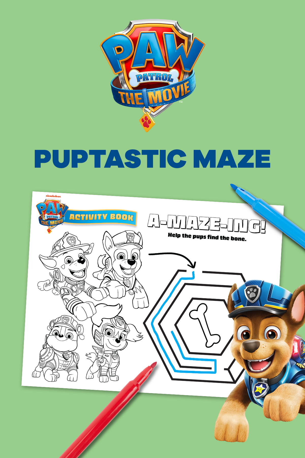 Home / Indoor Activities Help the Pups Find Their Bone It’s an a-maze-ing game. By Nickelodeon Staff Share Don’t be a wet dog. Follow your nose to find the bone in this mini maze. Print Now Tags: PAW Patrol, Indoor Activities, PAW Patrol: The Movie, Preschool Printables, Printables, Indoor Activities, Paw Patrol, Preschool, printables