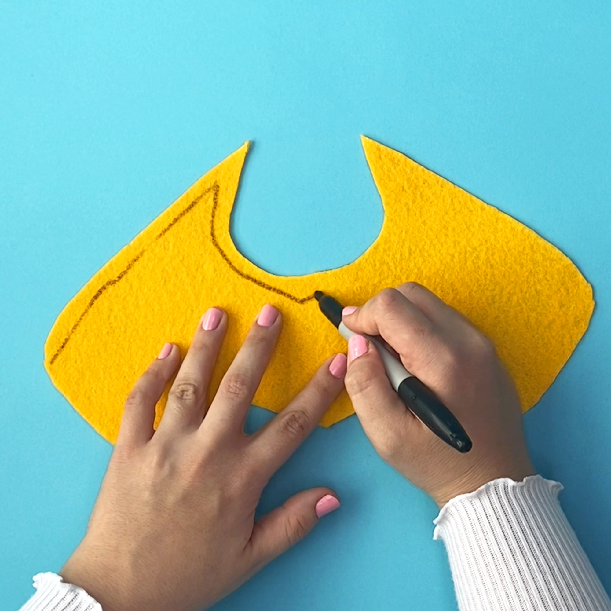 Step 3: Using a permanent marker, draw a half-inch trim around the perimeter of the yellow felt shape.