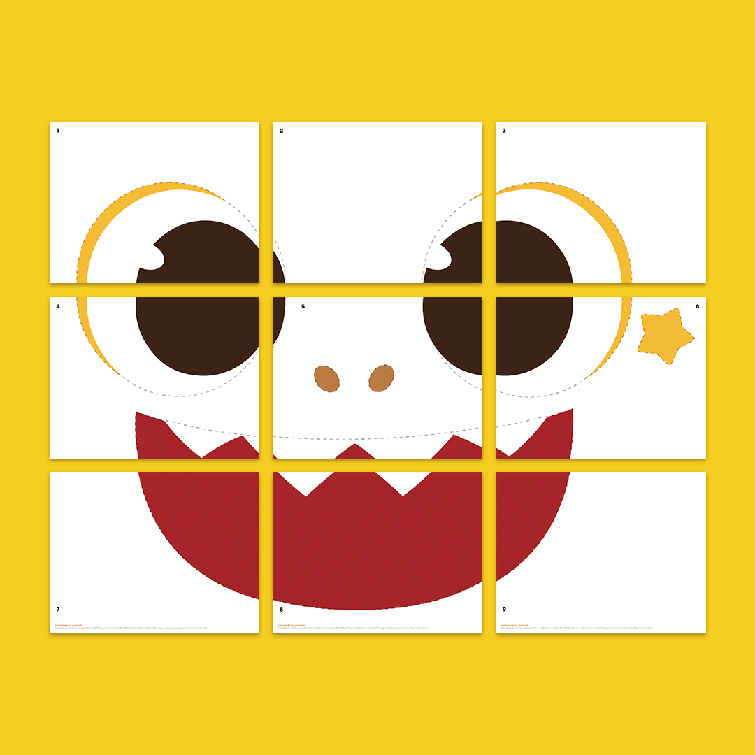 12Get extra festive this October 31! Decorate your door with colorful Nick printables. Do you recognize that sharp, toothy smile? How about that glowing eye? All you need is a plastic colored table cloth, access to a printer, and some tape or glue, and you’ll have a knockout door decal!