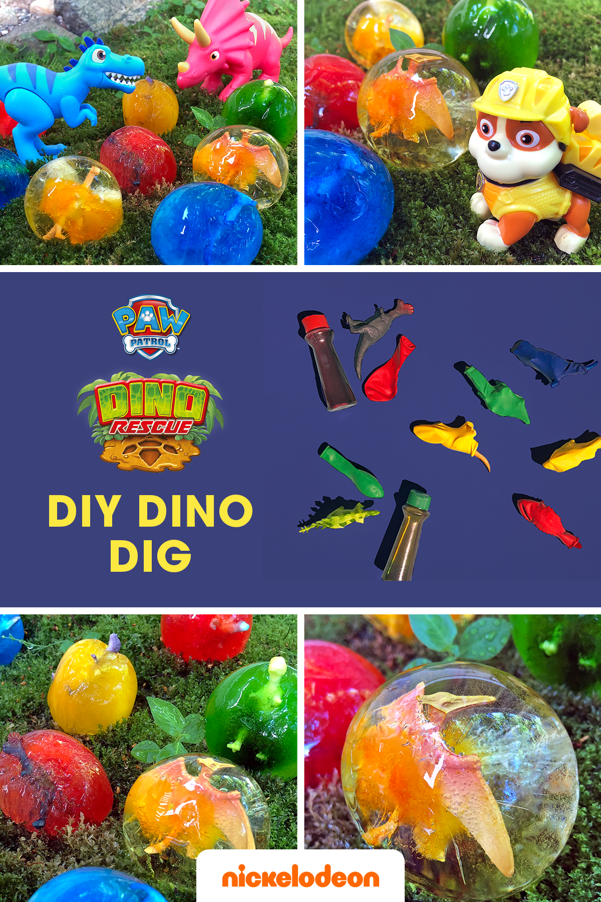 This DIY dino dig takes a little bit of time — so prep your kid about it being a two-day process. The eggs need 24 hours in the freezer before they can “hatch” — but in the meantime, you can make a baby dino nest out of some hand towels or a “Welcome Home!” sign for your new crop of baby dinos.