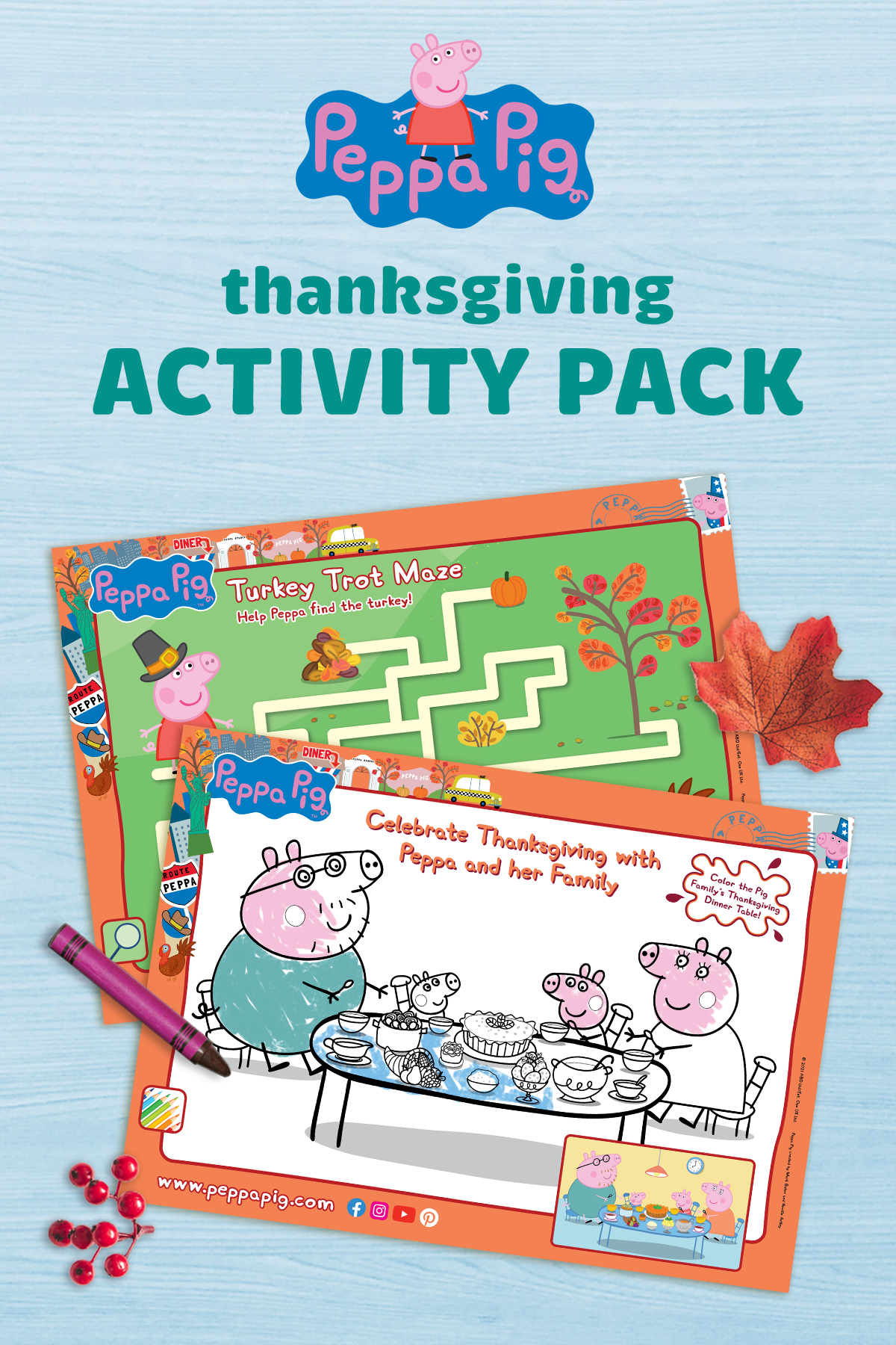 Home / Holiday Peppa Pig Thanksgiving Activity Pack Celebrate the holiday with Peppa and her family. By Nickelodeon Staff Share From mazes to coloring pages, there’s plenty in here that you little pig will love. Print Now Tags: Peppa Pig, Holiday, Peppa Pig Coloring Pages, Preschool Printables, Printables, Winter Holidays