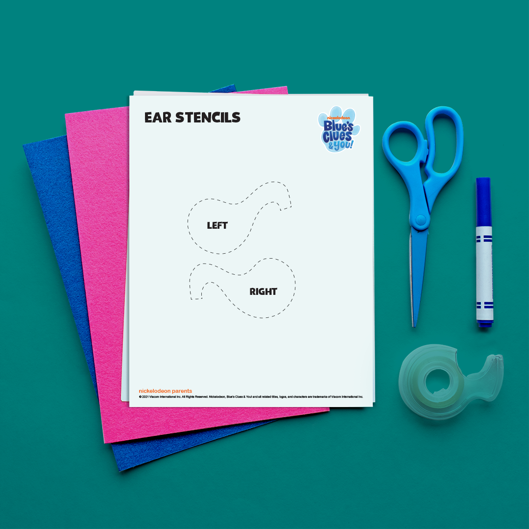 Step 1: Use the stencil to trace ears out of blue/pink felt