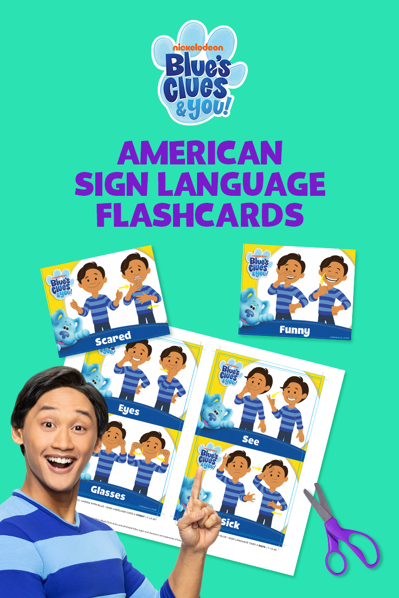 Josh and Blue want to help your kid learn how to communicate without speaking. Practice these basic ASL words (like excited, funny, sad) with printable flashcards and pepper your new hand signs into conversation throughout the week.