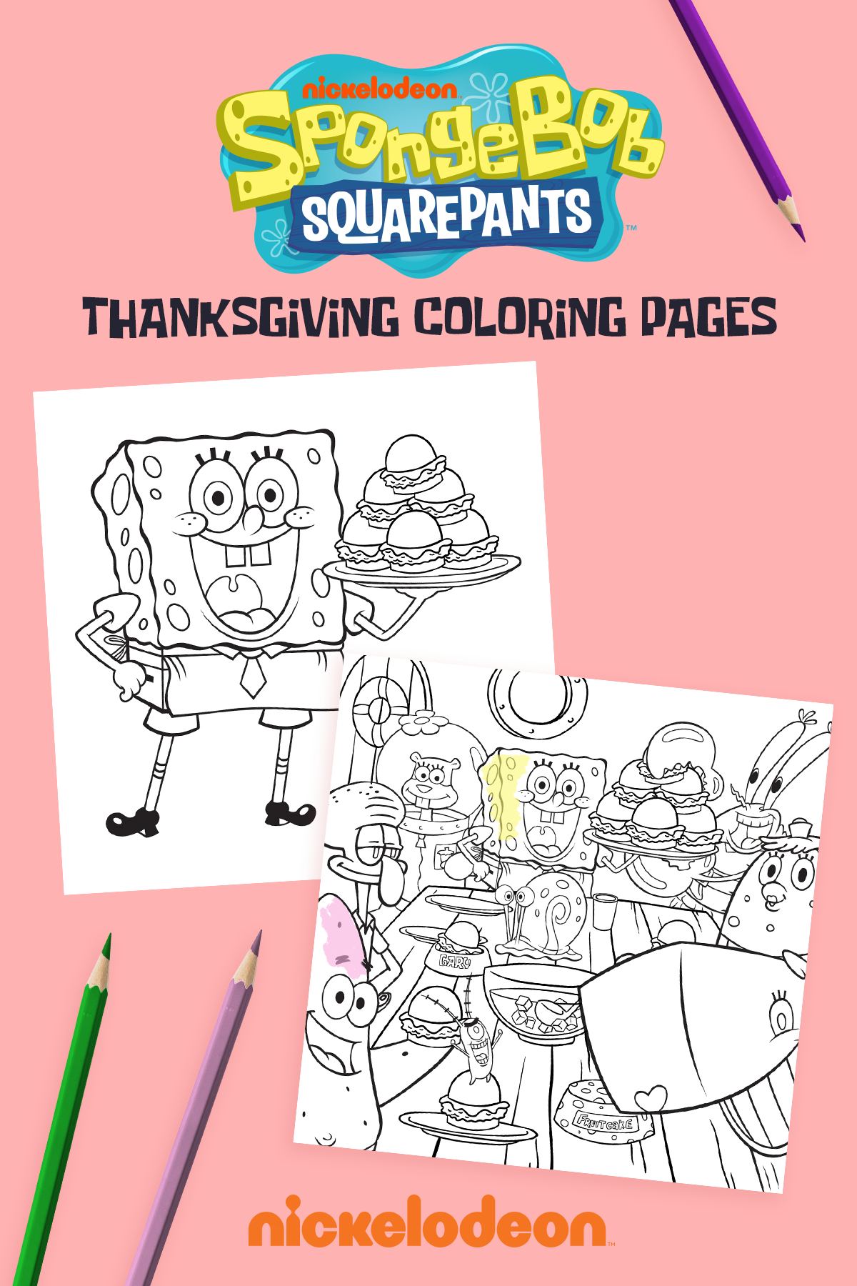 Sit everyone at the kids table this year! Roll out the crayons and get to work filling in SpongeBob, Patrick, Plankton, Gary, and the rest of the waterlogged gang and their feast of turkey, burgers, punch, and fruit cakes. Gobble gobble, gulp!