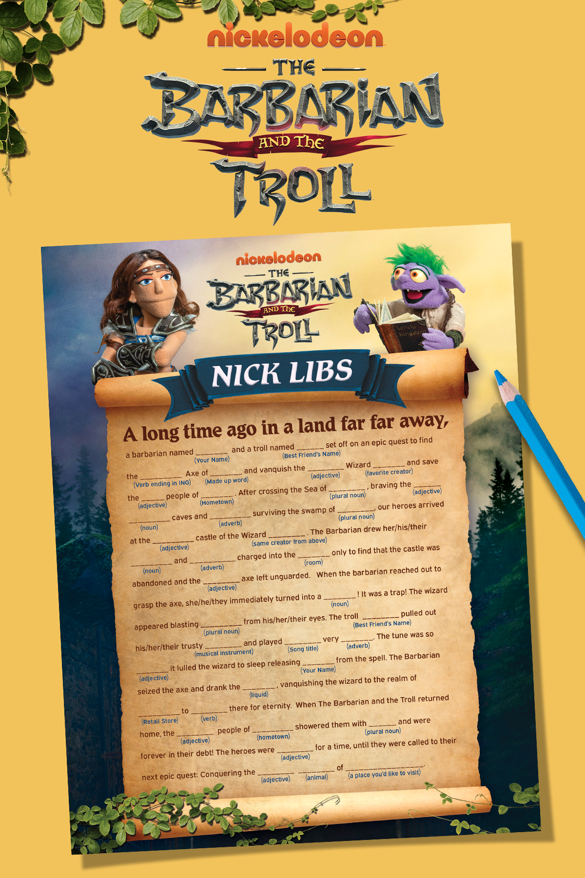 A long time ago, in a land far away, a scroll was unrolled to reveal some word play. In search of excitement and maybe a song, you can fill in the blanks as you roll along.