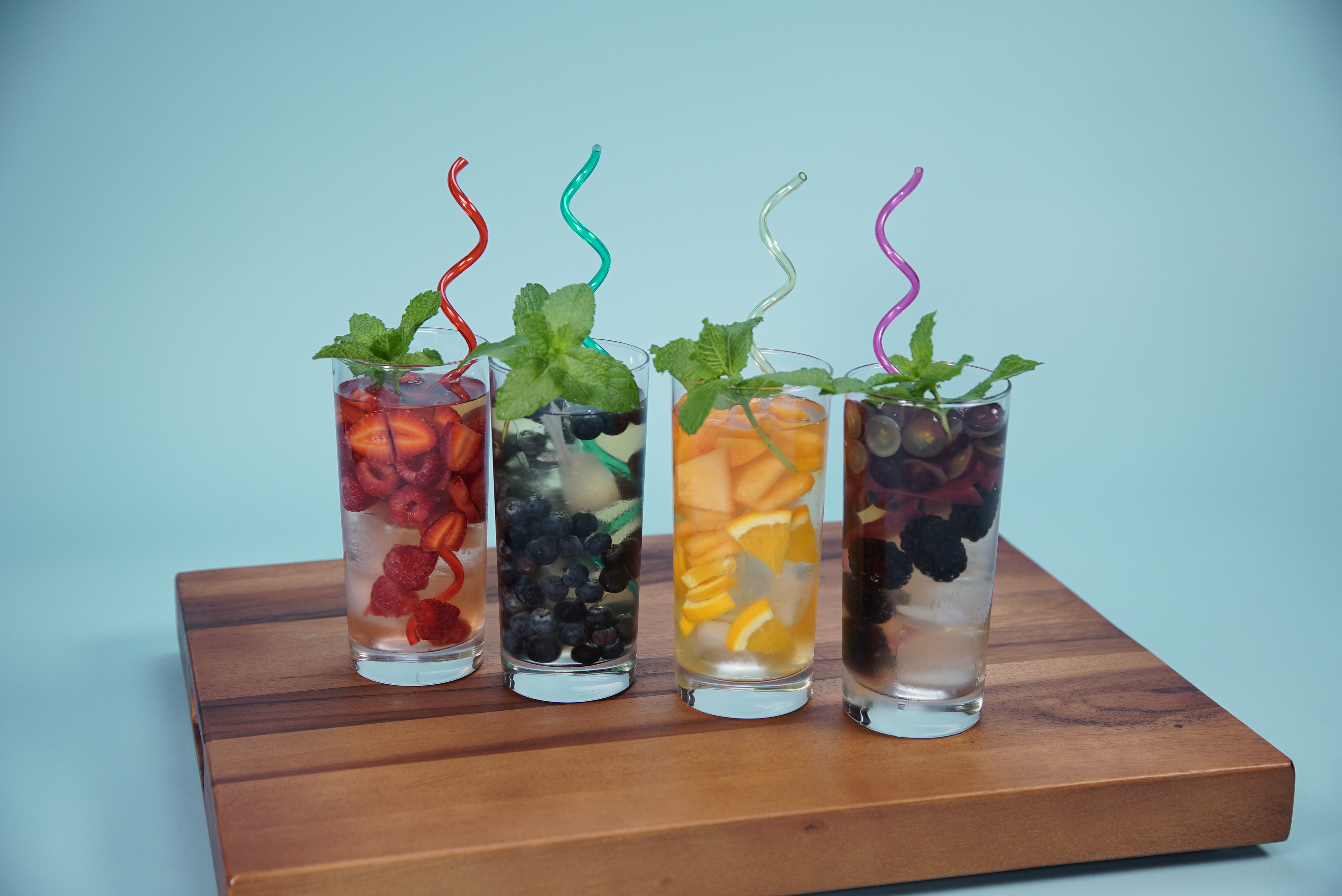 For Garnish: Mint leaves, sliced strawberries, raspberries, sliced mango, sliced orange, red grapes, blackberries, blueberries.