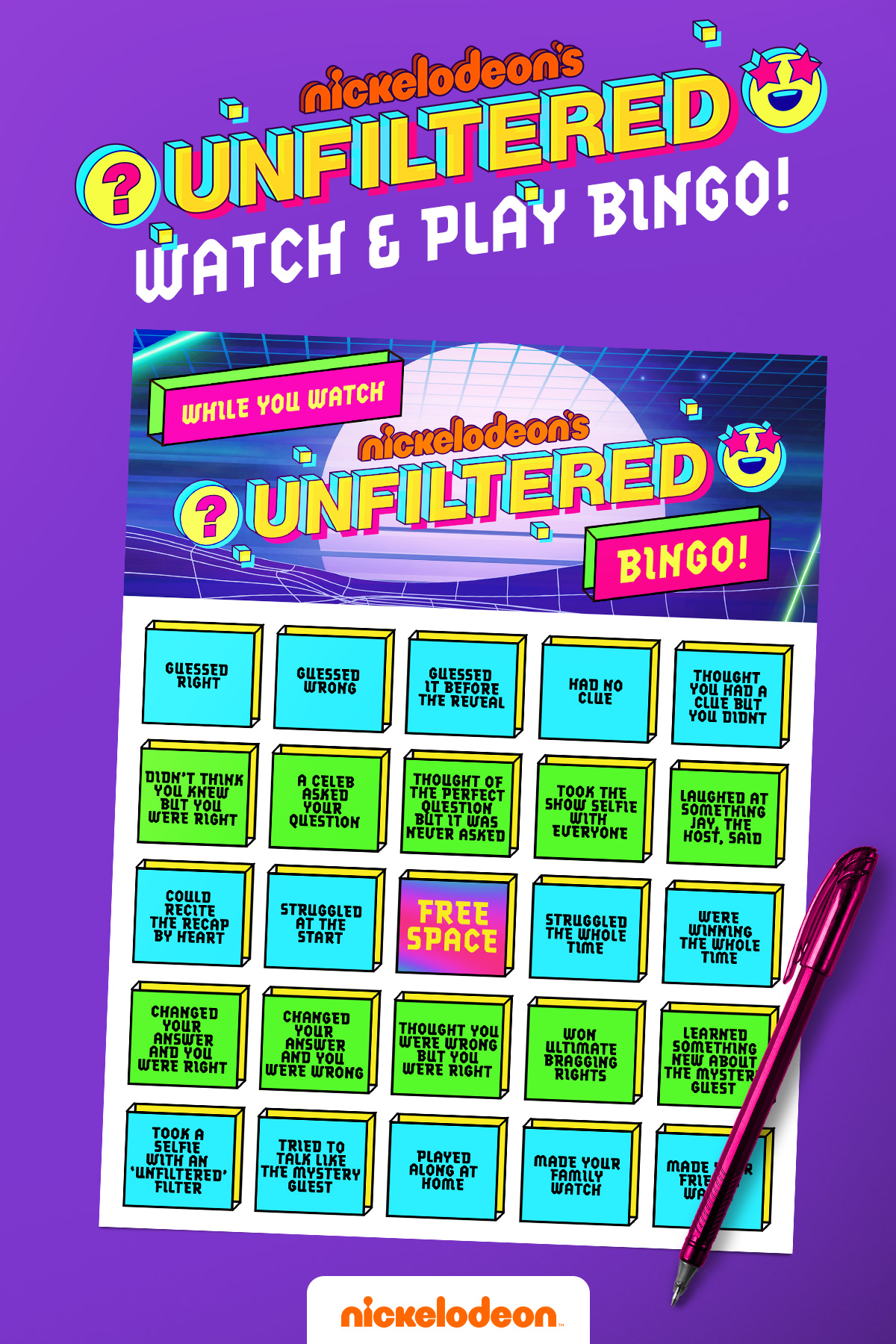 Home / Big Kids Call It as You See It: Unfiltered BINGO! Watch and play and win! By Nickelodeon Staff Share Print and play as the game show progresses, guests ask questions, and celebs reveal themselves behind the filter. Print Now Tags: Big Kids, Indoor Activities, Nick Saturday Night Watch Party, Printables, Big Kids, Indoor Activities, printables, Unfiltered