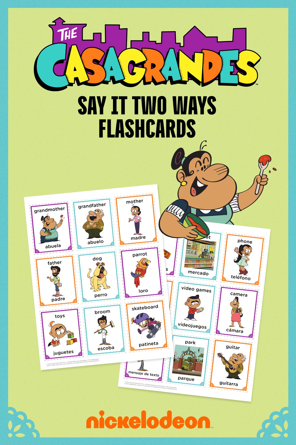 Don’t know your grandpa from your abuelo? Say it in Spanish with these printable flash cards featuring The Casagrandes and English-Spanish word translations.